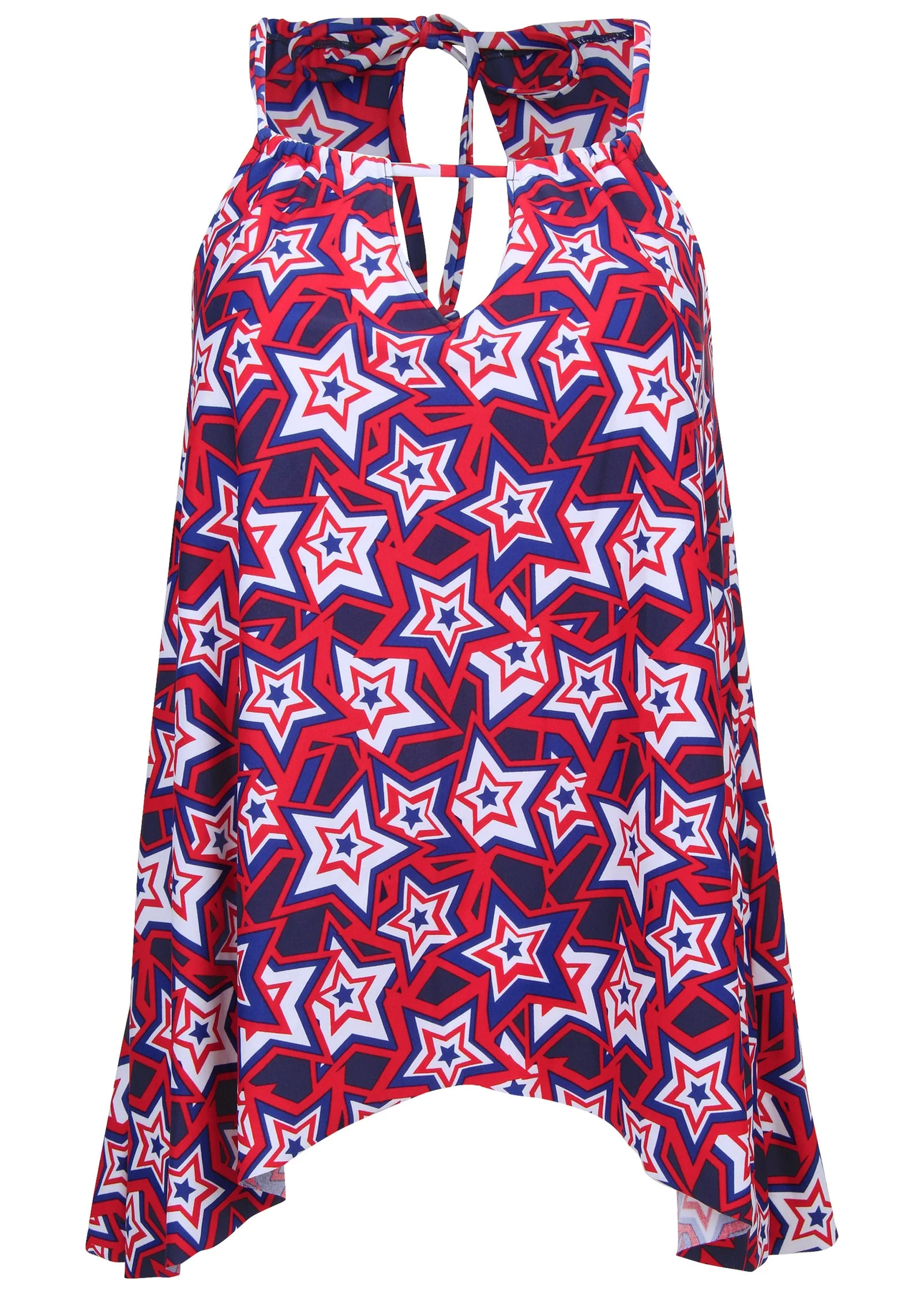 Now on our must-pack list: this easy tankini! Featuring cutouts at front and back, this loose-fitting top promises allure while keeping you covered with its longer-at-the-sides silhouette. The narrow slider strap secures at the back with an adjustable tie, letting you enjoy your time outdoors in style.