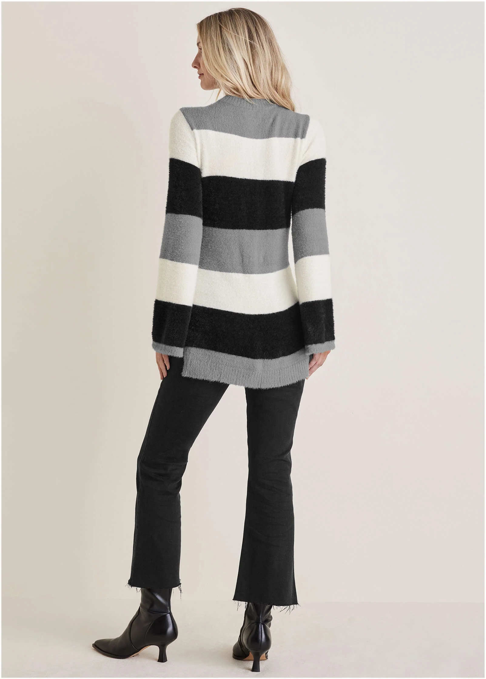 It's official: We've created the coziest sweater. Eyelash fabric makes it feel like you're engulfed in the comfiest blanket. Designed with a loose (but never boxy) fit, slightly flared sleeves and a split hem, it's the ultimate toss-on-and-go piece. Add in bold stripes that pair as well with leggings as they do with denim and voila! It's officially the sweater dreams are made of.